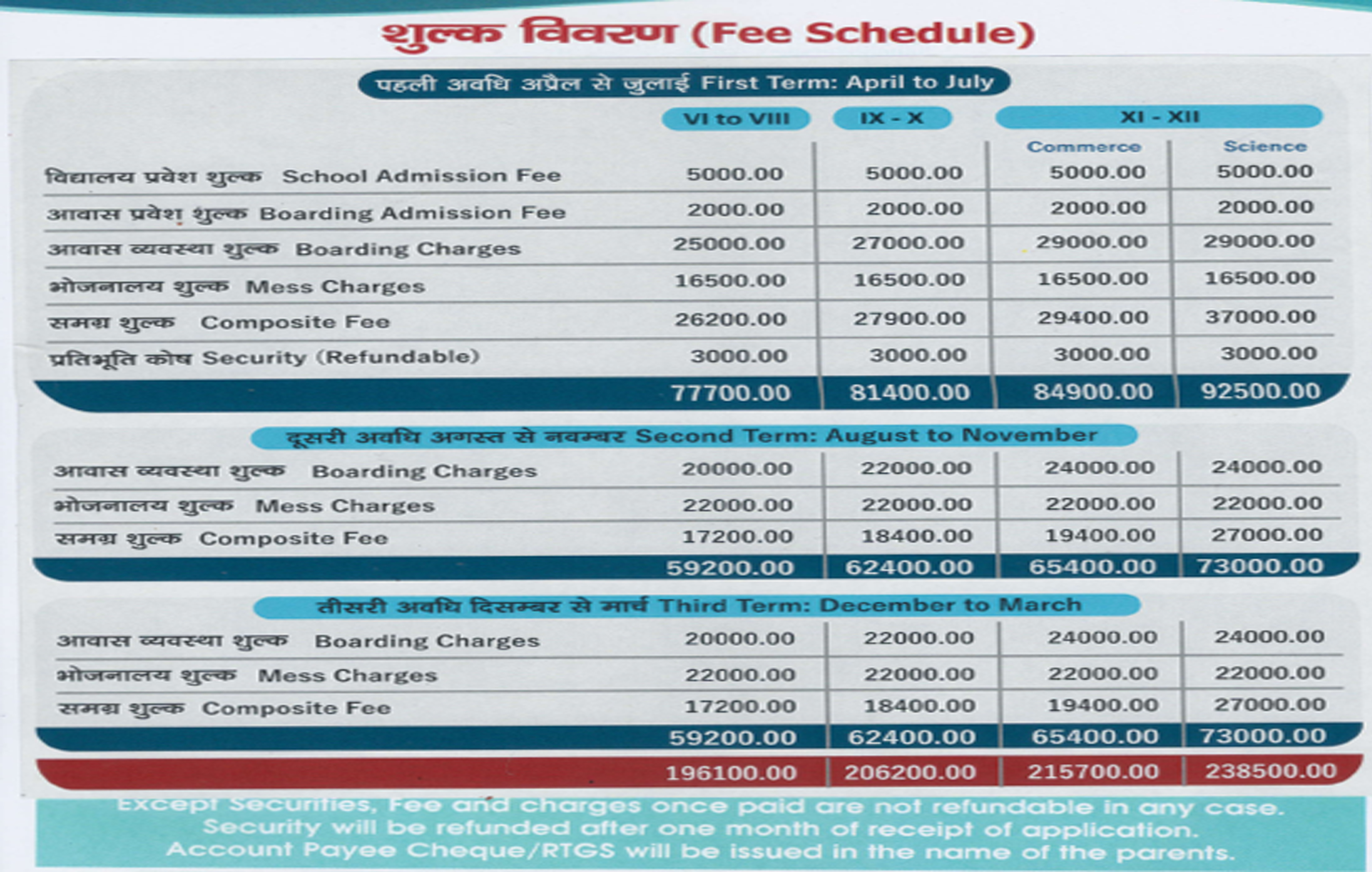 Fee should be paid only through a crossed demand draft, drawn in favour of 'Gita Niketan Awasiya Vidyalaya' payable at Kurukshetra.